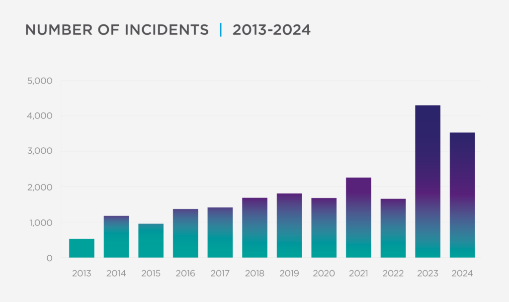 On the rise: Antisemitism Number of Incidents in the United Kingdom 2013 to 2024 (CST)